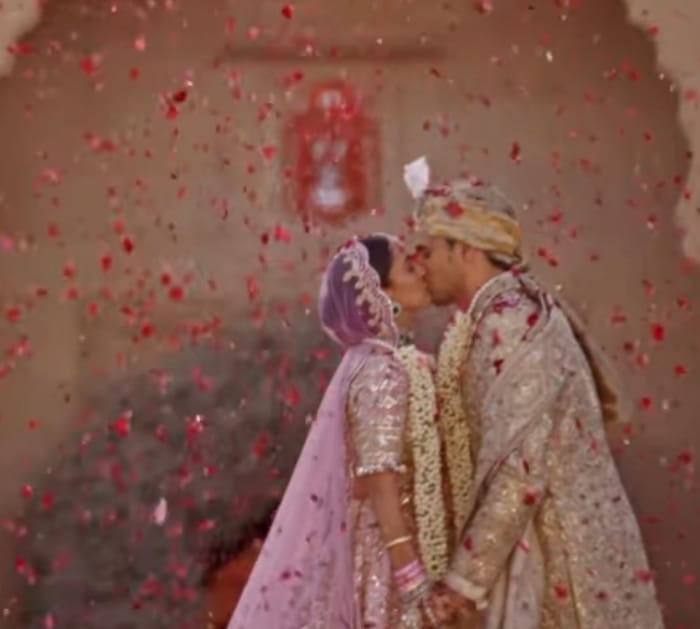 Sidharth Malhotra and kiara advani looked nothing less than a prince and princess on their wedding day. For the special day, the actress had opted for a custom ombre lehenga in the shade of empress rose from the ace designer, manish Malhotra's collection. Her outfit featured Swarovski crystals and intricate embroidery inspired by the couple’s love for roman architecture. She paired it with an embellished choli, a sheer dupatta and emerald jewellery. On the other hand, Sidharth looked dapper in a manish Malhotra sherwani.