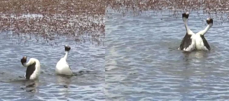 కొన్ని కొన్ని సార్లు ఇలా కొలనులో పక్షులు చేసే విన్యాసాలు అయితే అందరినీ అబ్బురపరుస్తూ ఉంటాయి అని చెప్పాలి. ఇక ఇలాంటి తరహా వీడియోలు చాలానే సోషల్ మీడియాలో ప్రత్యక్షమౌతూ అందరి హృదయాలను తాకుతూ ఉంటాయని చెప్పాలి. ఇక ఇప్పుడు ఇలాంటి తరహా వీడియో ఒకటి సోషల్ మీడియాలో తెగ చక్కర్లు కొడుతుంది. రెండు బాతులు ఏకంగా కొలనులో అటు ఇటు ఈదుతూ ఎంజాయ్ చేస్తూ ఉన్నాయి. అదే సమయంలో అద్భుతమైన డాన్స్ తో ఆకట్టుకున్నాయి అని చెప్పాలి. ఇలా కొలనులో బాతులు డాన్స్ చేయడం చూసి ప్రతి ఒక్కరు కూడా షాక్ అవుతున్నారు.