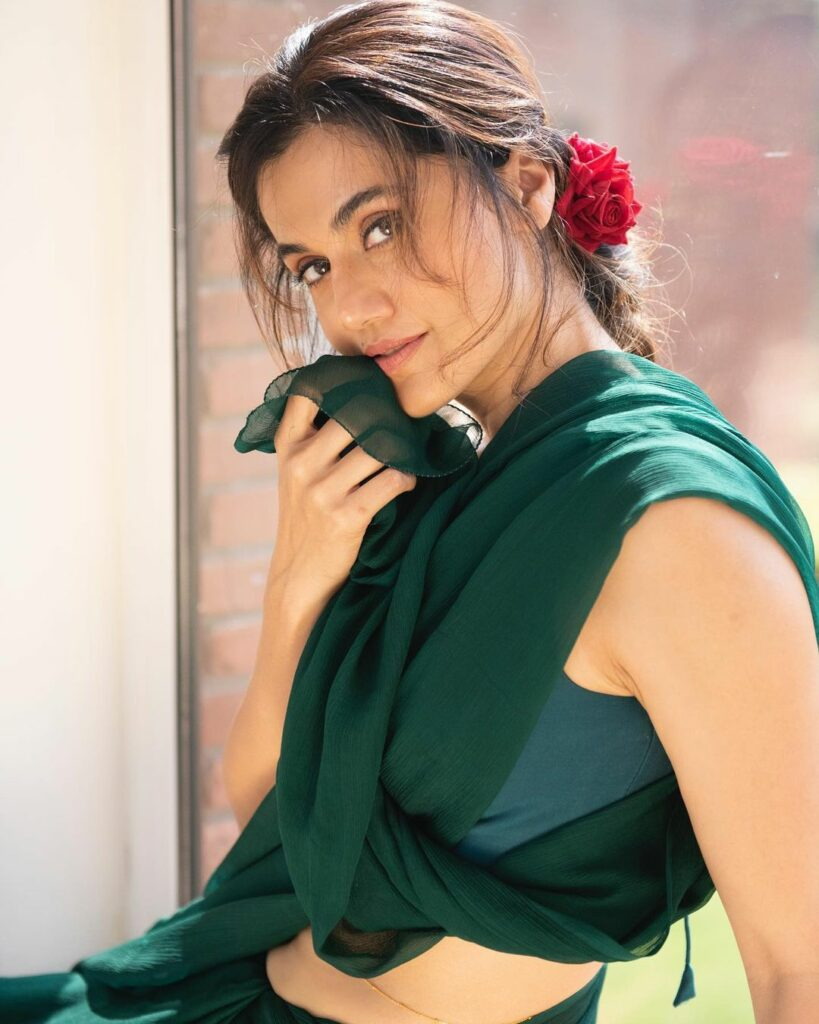 taapsee pannu has created quite a buzz on social media. The actress has released yet another stunning image wearing a green saree as her fans wait for her next