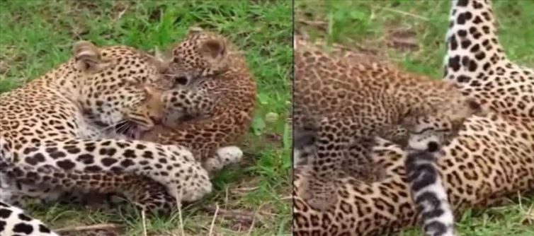 ఇంతకీ ప్రస్తుతం వైరల్ గా మారిపోయిన వీడియోలో ఏముందంటే.. ఒక చిరుత పులి హాయిగా పడుకుని సేద తీరుతూ ఉంటుంది. అచ్చంగా తల్లి పడుకున్నప్పుడు.. ఇక పిల్లలు గారాభం చేస్తూ విసిగించినట్లుగానే అటు చిరుత పులి పిల్ల కూడా తల్లిని అలాగే విసిగించడం మొదలుపెట్టింది. తోకను కొరకడంతో ఇక తల్లి ఒక్కసారిగా తన బిడ్డను దగ్గరికి తీసుకుంది. దీంతో ఇక తల్లి ఒడిలో పిల్ల చిరుత ఎంతో గారాబం చేస్తూ ఒదిగిపోయింది. ఇది చూసి అందరూ ఫిదా అవుతున్నారు అని చెప్పాలి. ఇంకెందుకు ఆలస్యం మీరు కూడా ఈ వీడియో చూసేయండి.