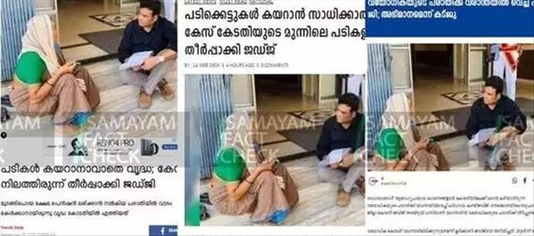 ഉദ്യോഗസ്ഥരെ കണ്ടിട്ടും കാര്യമുണ്ടായില്ല. തുടര്ന്ന് അവര് കളക്ടറെ കാണാന് തീരുമാനിച്ചു. അദ്ദേഹത്തിന്റെ ഓഫീസിന് മുന്നിലിരിക്കുമ്പോള് അപ്രതീക്ഷിതമായ കളക്ടര് ശ്രദ്ധിച്ചു. അവരോട് കാര്യങ്ങള് തിരക്കി. ഇത് 2020 ഫെബ്രുവരി 26 മുതല് ഇന്റര്നെറ്റില് വൈറലായ ഫോട്ടോയാണ്. തെറ്റിദ്ധരിപ്പിക്കുന്ന ക്യാപ്ഷനില് ഇത് പ്രചരിച്ചതാണ്, മാധ്യമങ്ങള് വിവരപരിശോധന നടത്താതെ റിപ്പോര്ട്ട് ചെയ്തത്.ഈ ഫേസ്ബുക്ക് പോസ്റ്റ് വ്യാജമാണ്. പടികയറാന് കഴിയാതെ ക്ഷീണിതയായ സ്ത്രീയെ നേരില്ക്കാണാന് കോടതിയില് നിന്ന് ജഡ്ജ് ഇറങ്ങിവന്നു എന്നതും, കട്ജുവിലൂടെയാണ് വാര്ത്ത ലോകം അറിയുന്നതെന്നതും വ്യാജമായ അവകാശവാദങ്ങളാണെന്ന് സമയം മലയാളം സ്ഥിരീകരിക്കുന്നു.
