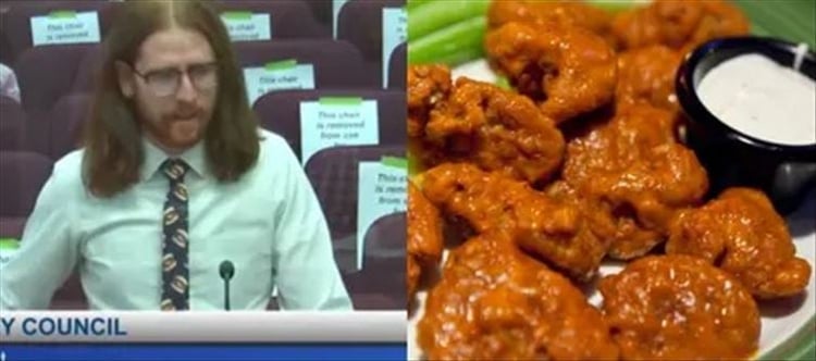 അമേരിക്കൻ നഗരമായ ലിങ്കണിലെ അഡ്ലെർ ക്രിസ്റ്റൻസൺ എന്ന് പേരായ വ്യക്തിയാണ് ലിങ്കൺ സിറ്റി കൗൺസിൽ മീറ്റിംഗിൽ തന്റെ ആവശ്യം ഉന്നയിച്ചത്. രണ്ടാമത്തെ കാരണം ബോൺലെസ്സ് ചിക്കൻ വിങ്സ് എന്നാൽ യഥാർത്ഥത്തിൽ ചിക്കൻ ടെൻഡർ ആണ്. എല്ലിന്റെ അംശം തീരെ ഈ ഭാഗത്തില്ല. തന്റെ അപേക്ഷയെ പിന്തുണയ്ക്കുന്നതിനായി കുറച്ചു കൂടി വാദങ്ങൾ നിരത്തിയ ശേഷം ഒടുവിൽ പ്രസംഗം അവസാനിപ്പിക്കുന്നത് "നമ്മൾ വളരെക്കാലമായി ഒരു നുണയിലാണ് ജീവിക്കുന്നത് ( ബോൺലെസ്സ് ചിക്കൻ വിങ്സ്), നമ്മുടെ അസ്ഥികളിൽ അത് അനുഭവപ്പെടുന്നതിനാൽ നമുക്കതറിയാം അറിയാം” എന്ന് പറഞ്ഞാണ്.