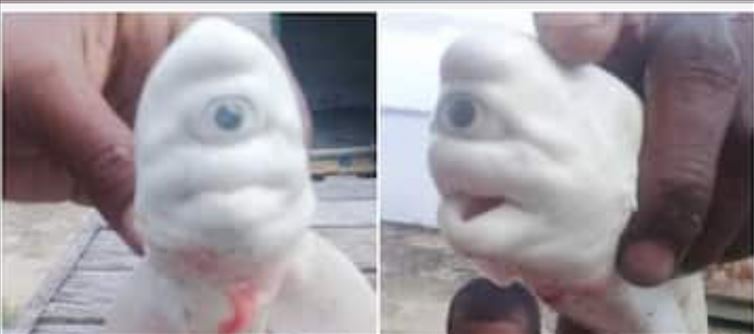 ఇక అసలు విషయానికి వస్తే ఇండొనేసియా సముద్ర జలాల్లో చేపల వేటకు వెళ్లిన జాలర్లు ఓ షార్క్ చేపను పట్టుకున్నారు. చనిపోయిన ఆ చేప పొట్ట కోసి చూస్తే.. దాని కడుపులో మరో బుల్లి షార్క్ చేప కనిపించింది. దాని నోటిపైన ఐదు రూపాయల బిల్లంత సైజులో ఒంటి కన్ను ఉంది. సాధారణంగా.. ఇలాంటి ఒంటి కన్ను చేపలను మనం కార్టూన్ చిత్రాల్లోనే చూస్తుంటాం. అలాంటిది నిజంగానే కనిపించడంతో దాని ఫొటోలు క్షణాల్లో వైరల్గా మారాయి. పైగా.. ఇది 2020 కావడంతో.. యుగాంతం కోసం ఎదురుచూస్తున్న కొంతమంది.. ఈ చేపను పట్టుకుని ‘ఇక అంతే సంగతులు’ ఇదిగో ఒంటి కన్ను చేపని ప్రచారం చేయడం మొదలుపెట్టారు.