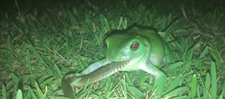 సాధారణంగా దేవుడు సృష్టించిన ఈ సృష్టిలో పాములు కప్పలను ఆహారంగా తీసుకుంటాయనే సంగతి తెలిసిందే. ఇది ప్రకృతి ధర్మం ఇంకా సృష్టి ధర్మం  కూడా. అయితే, ఇక్కడ చూసినట్లయితే సీన్ ఫుల్ గా రివర్స్  అయ్యింది.పామంటేనే గజ గజ వణికే  ఓ కప్ప ఎంతో ధైర్యంగా పాముతో పోరాడటమే కాకుండా దాన్ని ఆహారంగా చేసుకుంది. బతికుండగానే దాన్ని నోటిలో పెట్టుకుని మింగేయడానికి ప్రయత్నించింది. ఈ వీడియో ఇప్పుడు సోషల్ మీడియాలో వైరల్‌గా మారింది. ఈ తరహా కప్పలను గ్రీన్ ట్రీ ఫ్రాగ్స్ అంటారు. ఇవి సాధారణంగా క్రిములను తింటాయి. ఇంకా ఇవి తలుచుకుంటే ఇంకా అవకాశం ఉంటే.. అవి ఎలుకలు, గబ్బిలాలను కూడా ఆహారంగా తినేస్తాయట.భయంకరమైన పాములనే తిన్నాయి. ఇక ఇవి వీటికి ఒక లెక్క చెప్పండి. ఇక ఇలాంటి మరెన్నో వైరల్ న్యూస్ ల కోసం ఇండియా హెరాల్డ్ గ్రూప్ ని ఫాలో అవ్వండి. ఇంకా మరెన్నో వైరల్ న్యూస్ ల గురించి తెలుసుకోండి.