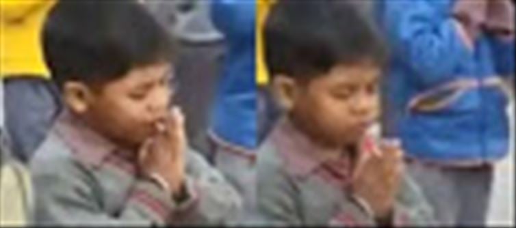 స్కూల్లో ప్రార్థన జరుగుతుంటే అందరి విద్యార్థుల మాదిరిగానే కళ్ళు మూసుకుని... దేవుడా మాకు ఇంత శక్తినివ్వు అని దేవుడిని ప్రార్థిస్తూ మరోవైపు లాలీపాప్ నోట్లో పెట్టుకుని ప్రార్ధన మధ్యలో చప్పరిస్తూ ఆ రుచిని ఆస్వాదిస్తూన్నాడు. కళ్ళు మూసుకొని మరి దేవుడికి సిన్సియర్ గా ప్రార్థన చేస్తూ లాలీపాప్ తినడం అందరినీ ఎంతో ఆశ్చర్యానికి గురి చేసింది. ఈ బుడ్డోడు చేసిన ఈ చిలిపి ప్రార్థనకు సంబంధించిన వీడియోను ఛత్తీస్గఢ్లోని కబిర్ధామ్ జిల్లా కలెక్టర్ అవనీష్ శరణ్ ఈ బుడ్డోడి వీడియో షేర్ చేశారు. ప్రస్తుతం ఈ వీడియో సోషల్ మీడియాలో వైరల్ గా మారింది.