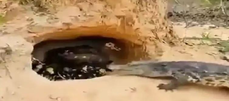 మొసలి నీళ్లల్లో ఉండే క్రూరజంతువుగా మనకు తెలుసు. బలిష్టమైన గజరాజును కూడా మొసలి ఓడించి మట్టికరిపిస్తుంది. అలాంటి క్రూర జంతువు ఈ చిన్ని బాతుతో స్నేహం చేస్తోందంటే ఆశ్చర్యంగా కలగక మానదు. ఈ వీడియో ప్రస్తుతం నెట్టింట వైరల్ అవుతోంది. హాయిగా పిల్లలతో పాటు గూటిలో దాగివున్న బాతు దగ్గరికి వచ్చిందో మొసలి. చూస్తుంటే వాటిని ఒక్కగుటకలో మింగేస్తుందేమో అనిపిస్తోంది.