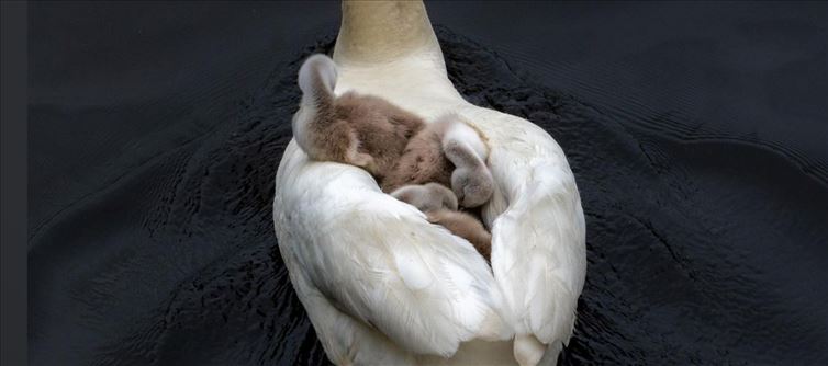 ఇక ఈ చిత్రాలలో చూసినట్లయితే మూడు సిగ్నెట్లు వాటి తండ్రి రెక్కల మధ్య స్నిగ్లింగ్ చేయడాన్ని చూడవచ్చు, నాల్గోది వెనుకబడి ఉంటుంది. తెలియని కారణాల వల్ల ఆరుగురు శిశువులకు జన్మనిచ్చిన కొద్ది రోజులకే తల్లి హంస మరణించిందని వారి చిత్రాలను పంచుకున్నారు. శిశువులలో ఒకరు మునిగిపోగా, మరొకరిని జంతు నియంత్రణ ద్వారా రక్షించాల్సి వచ్చింది. ఇతర నలుగురు హంస పిల్లలు తండ్రి వైపు ఉంటారు.అయితే అత్యంత హృదయ విదారక ఇంకా హృదయపూర్వక సంఘటన జరిగింది. గత వారం, బోస్టన్లో ఆరుగురు శిశువు హంసలు జన్మించాయి.తెలియని కారణాలతో తల్లి కొద్ది రోజుల తరువాత మరణించింది. సిగ్నెట్లలో ఒకటి మునిగిపోయింది.మరొక దానిని జంతు నియంత్రణ ద్వారా రక్షించాల్సి వచ్చింది. కానీ ఈ పాపా హంస తన సొంతంగా మిగిలిపోయింది.సవాలుకు పెరుగుతోంది. ఈ రోజు, చివరకు నేను వాటిని ఫోటో తీయడానికి అవకాశం పొందాను మిగిలిన నాలుగు సిగ్నెట్లలో మూడు నాన్నపై ప్రయాణించేటట్లు కనుగొన్నాను, నాల్గవది వెనుకబడి ఉంది. ఎస్ప్లానేడ్ మడుగులోకి ప్రవేశించే వారిని పట్టుకోవడానికి నేను ఒక వంతెన వద్దకు పరుగెత్తాను.ఆ హంస కుటుంబం చూడ ముచ్చటగా ఉందని మాథ్యూ రైఫ్మన్ పేర్కొన్నాడు.ప్రస్తుతం ఈ పిక్ నెట్టింట తెగ వైరల్ అవుతుంది.