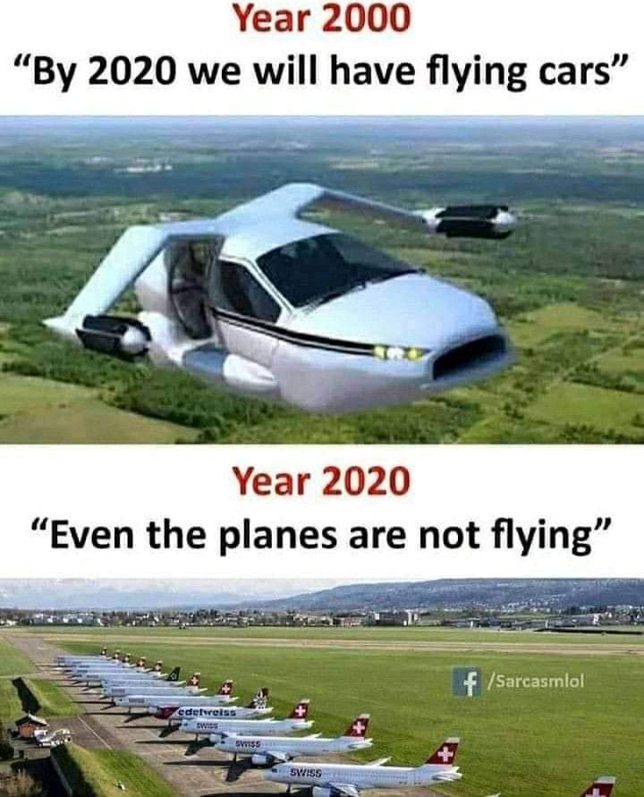 ఇక 2020 సంవత్సరం లో కార్లు గాల్లో ఎగరడం కాదు.. గాల్లో ఎగిరే విమానాలే చివరికి కార్ల లాగా భూమికే పరిమితం కావాల్సిన పరిస్థితులు వచ్చాయి. ఇక ఇటీవలే సోషల్ మీడియాలో దీనికి సంబంధించిన ఒక ఫొటోస్ వైరల్ గా మారిపోయింది. 2000 సంవత్సరంలో ఇక 2020 సంవత్సరం వచ్చేసరికి అందరం గాల్లో ఎగిరే కార్లలో తిరుగుతూ అని అనుకున్నారు. కానీ తీరా 2020 సంవత్సరం లోకి వచ్చేసరికి గాల్లో ఎగిరే విమానాలు సైతం ఎగర లేని పరిస్థితిలో ఉన్నాయి అని తెలిపే ఒక ఫోటో సోషల్ మీడియాలో తెగ చక్కెర్లు కొడుతుంది. ఈ ఫోటో చూసి నెటిజన్లు అవును నిజమే.. భలే చెప్పావ్ గురు అంటూ భిన్నమైన కామెంట్లు పెడుతున్నారు.