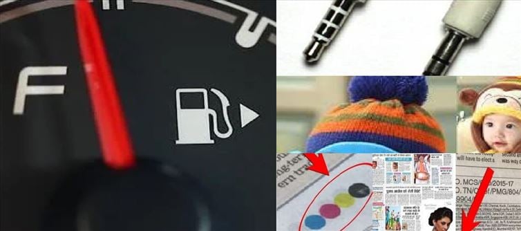 మనము ఏదైనా కారు డ్రైవింగ్ చేస్తున్నప్పుడు. కార్ పెట్రోల్ క్యాప్ ఎటు వైపు ఉందో తెలుసుకోవాలంటే, ఈ సింబల్ ఎటువైపు చూపిస్తే అటు వైపు ఉన్నట్లు గుర్తు అట.5). న్యూస్ పేపర్లో నాలుగు చుక్కలు: