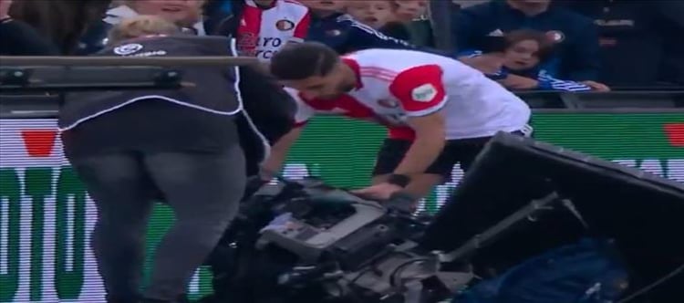 పుట్ట్ బాల్ ఆటలో భాగంగా ఆటగాడు ఎల్స్ఫ్ బోర్గ్ జట్టుకి చెందిన డిపెండర్ సైమన్ స్టాండ్ చేసిన పని ఇప్పుడు వైరల్ గా మారింది. సైమన్ స్టాండ్ ఫుట్బాల్ను కిక్ చేయాలనుకుని అదుపు తప్పి సైడ్లైన్ మీదకు వెళ్లబోయి.. అప్పటికే బంతిని కిక్ చేసిన సైమన్ వేగంతో ముందుకు వెళ్ళాడు దాంతో కాస్త స్లిప్ అయ్యి అక్కడే ఉన్న కెమెరా ఉమెన్ వైపుకు పడిపోతుండగా అది గమనించిన ఆ కెమెరా ఉమెన్ అదృష్టవశాత్తు అక్కడ నుండి పక్కకు తప్పుకుంది. దాంతో ప్రమాదం కాస్త తప్పింది. కెమెరా మాత్రం తలకిందులుగా పడింది. ప్రస్తుతం ఈ దృశ్యాలు సోషల్ మీడియాలో వైరల్ గా మారాయి. త్రుటిలో ప్రమాదం తప్పడంతో అక్కడున్నవారు ఊపిరిపీల్చుకున్నారు.