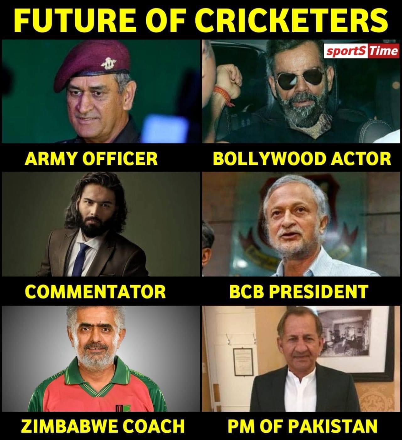 అయితే క్రికెటర్లకు సంబంధించి ఏదైనా అంశం సోషల్ మీడియాలోకి వచ్చింది అంటే చాలు అది క్షణాల్లో వ్యవధిలో వైరల్గా మారిపోతూ ఉంటుంది. ఇక్కడ ఇలాంటి ఒక ఫోటో వైరల్ గా మారి పోయింది. కాగా ఈ ఫోటో లో ప్రస్తుతం క్రికెట్ లో కొనసాగుతున్న వారు భవిష్యత్తులో ఏం అవ్వబోతున్నారు అనే విషయాన్ని ఇక్కడ ప్రస్తావించారు. ఈ క్రమంలోనే ఇక ప్రస్తుతం భారత మాజీ ఆటగాళ్లుగా కొనసాగుతున్న మహేంద్రసింగ్ ధోని భవిష్యత్తులో ఆర్మీ ఆఫీసర్ గా సెటిల్ అవుతాడు అని చెప్పుకొచ్చారు. ప్రస్తుతం టీమిండియా కెప్టెన్గా ఉన్న విరాట్ కోహ్లీ ఏకంగా బాలీవుడ్ హీరోగా ఫ్యూచర్ లో మారిపోతాడట. కేఎల్ రాహుల్ కామెంటేటర్ గా మిగిలిపోతాడట. ఇలా ప్రస్తుతం స్టార్ క్రికెటర్ గా ఉన్న వారు భవిష్యత్తులో ఏం కాబోతున్నారూ అనే విషయాన్ని తెలియ జేసే విధంగా ఈ ఫోటో ప్రస్తుతం అందరినీ ఆకర్షిస్తోంది. ఇక ఇది చూసి వామ్మో ఇదేం క్రియేటివిటీ బాసు అంటూ అందరూ ఆశ్చర్యపోతున్నారు.