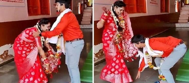 All the wife can do was gasp in surprise as he leaned down and touch her toes as well. The groom's move is clearly a tremendous hit, with 35.6 million views and 3 million likes. It won him not only his wife's admiration but also the esteem of all those who feel that couples operate best as equals, as a group. 'Kya baat hai,' one user said. 'You two are so adorable. 'Best of luck in your career,' one person said, while another said, 'Be joyful, Continue to bless you.'