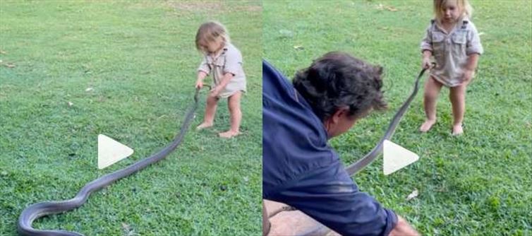 పసిబిడ్డ ఆత్మవిశ్వాసంతో రెండు చేతులతో కొండచిలువ తోకను పట్టుకుని లాగడం ప్రారంభించాడు. కొండచిలువ కూడా ఒక చెక్క స్తంభానికి చుట్టుకునేందుకు ప్రయత్నిస్తుంది, ఇది రైట్‌ను బంజోను బయటకు తీయమని కోరింది.ఇది వీడియోలో కనిపించే ఆలివ్ కొండచిలువ మరియు అవి విషపూరితం కానివి మరియు మానవులకు ప్రమాదకరం కానప్పటికీ, పిల్లవాడు జంతువు దగ్గరకు వెళ్లడానికి అనుమతించాలా వద్దా అని ఇంటర్నెట్ చర్చిస్తోంది.రైట్ తన కుమారుడి ప్రాణాలను ప్రమాదంలో పడేసినట్లు నెటిజన్లు ఆరోపిస్తున్నారు, అయితే ఆస్ట్రేలియాలో నివసించే ప్రజలు ఇది సాధారణమని భావించారు మరియు అలాంటి జంతువులతో ఎలా వ్యవహరించాలో చిన్న వయస్సు నుండే పిల్లలకు నేర్పించడం మంచిది.ఒకవేళ జరగరానిది జరిగితే ఏంటి పరిస్థితి అని నెటిజన్స్ ఆగ్రహం వ్యక్తం చేస్తున్నారు. ఎందుకంటే పిల్లలు తెలీక ఈ పెంపుడు పాము అనుకోని భయం లేకుండా విష సర్పాల జోలికి పోతే ఏంటి పరిస్థితి అని కామెంట్స్ చేస్తున్నారు.ఇక వైరల్ అవుతున్న ఈ వీడియోని కింద వున్న ఇంస్టాగ్రామ్ లింక్ ఓపెన్ చేసి మీరు చూడండి.