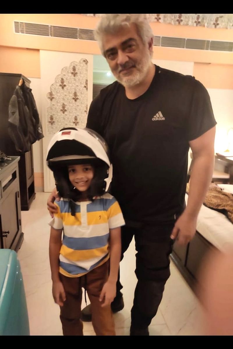 Meanwhile, a video of actor ajith riding a motorbike is spreading like a conflagration on the web. In this scenario, a photograph of Kutty Thala with Thala ajith has been revealed on the websites.