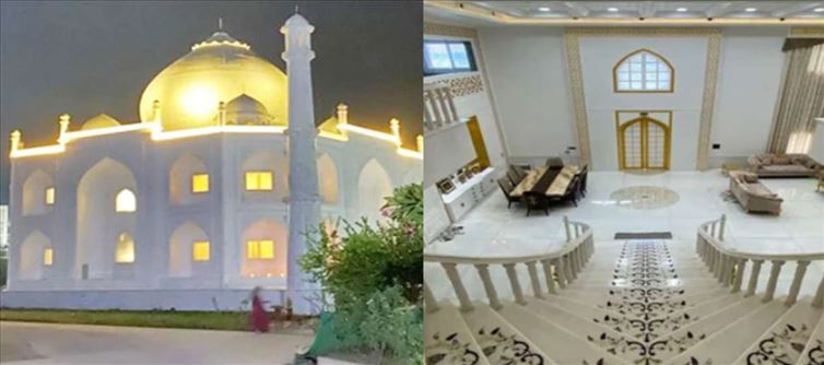 ఇంటిని నిర్మించిన ఇంజనీర్ అసలు స్మారక చిహ్నం యొక్క ఖచ్చితత్వం మరియు అందాన్ని నిర్వహించడానికి నిర్మాణ సమయంలో అనేక సవాళ్లను ఎదుర్కొన్నాడు.అసలు తాజ్‌మహల్‌ను నిశితంగా అధ్యయనం చేసి, ఇండోర్ మరియు పశ్చిమ బెంగాల్‌లోని వివిధ కళాకారుల సహాయం కోరిన తర్వాత ఈ ఇల్లు నిర్మించబడింది. ఇల్లు 29 అడుగుల ఎత్తైన గోపురం మరియు వైపులా తాజ్ మహల్ లాంటి టవర్లతో చక్కదనం ప్రతిబింబిస్తుంది.ఇంటి ఫ్లోరింగ్‌ను రాజస్థాన్‌లోని 'మక్రానా' నుండి తయారు చేయగా, ఇంటి సున్నితమైన ఫర్నిచర్ ముంబైకి చెందిన కళాకారులచే తయారు చేయబడింది. నాలుగు బెడ్‌రూమ్‌లతో పాటు, ఇంట్లో లైబ్రరీ మరియు ధ్యాన గది కూడా ఉన్నాయి. అసలు తాజ్ మహల్ యొక్క సారాంశాన్ని సంగ్రహించడం, ఇంటి లోపల మరియు వెలుపల ఉన్న లైట్లు రాత్రి సమయంలో ఐకానిక్ స్మారక చిహ్నం వలె ప్రకాశిస్తాయి.