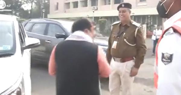 Patna: bihar minister Jivesh Mishra courted controversy when he was on his way to attend the winter session of the assembly and was stopped by policemen.