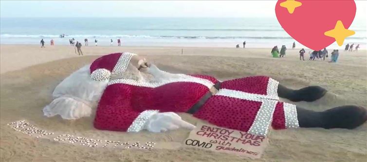 International Sand Artist Sudarsan Pattnaik, on the occasion of christmas, has prepared a very beautiful and big sculpture of Santa Claus. The special thing is that this sculpture is made from 5400 rose flowers.