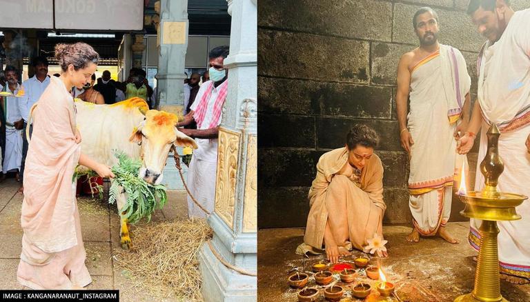 Kangana Ranaut has shared a special post on her instagram account on the occasion of New Year, in which there are some pictures of her. In these photos, kangana is seen worshiping in the Rahu-Kethu temple. She was seen worshiping with full devotion and after that, she also fed fodder to Komatha. During this, kangana ranaut was wearing an off-white colored cotton sari and she tied her hair in a bun.