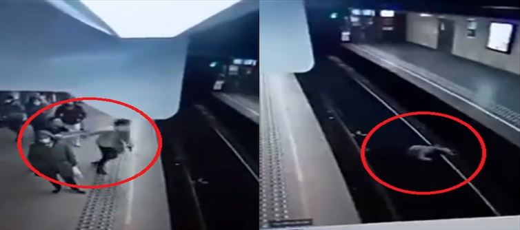 Many people were waiting for the train at the Brussels metro station in the city of Belgium. A woman was standing on the platform of the train, a man coming from behind, deliberately pushing the woman towards the tracks. The woman, frustrated and shocked by this unexpected attack, falls down the tracks without any defense or resistance.