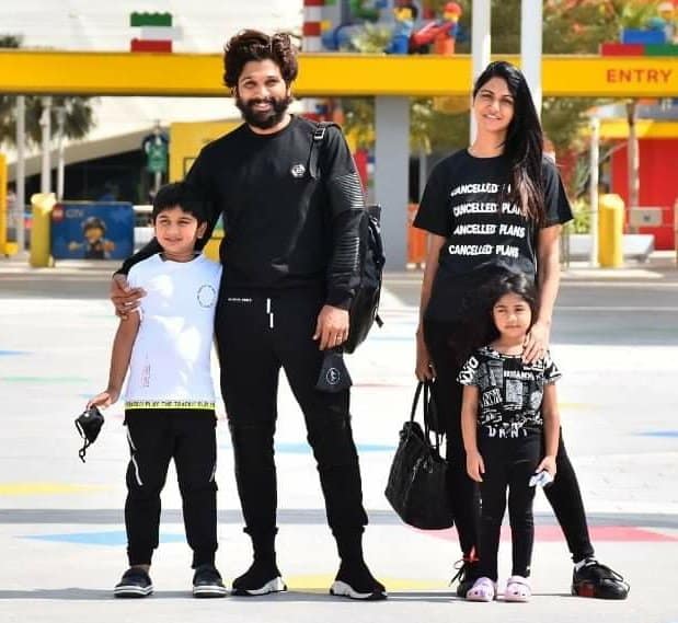 Allu Arjun's wife sneha has shared a cute picture with children in the story on her instagram account. In this photo, Allu is seen sitting on the ground with both the children and he is wearing a black color tracksuit. At the same time, sneha has hidden Allu's face and has replaced the face with a black heart emoji. See here this picture of Allu going viral-
