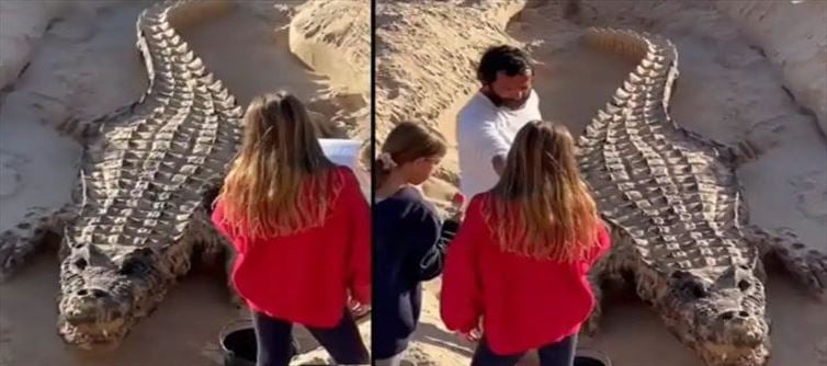 కాని ఎందుకో తెలుసా? అదొక కేవలం బొమ్మ మాత్రమే. ఎక్కడో ఓ వ్యక్తి.. సముద్రపు ఒడ్డున మొసలి రూపంలో  వుండే శాండ్ ఆర్ట్ అనేది వేశాడు. ఇక దాన్ని చూస్తే అత్యత్భుతంగా ఉంటుంది మరి. అచ్చం మొసలి నిజంగా అక్కడ ఉన్నట్లుగా అతడు దింపాడు. ఇప్పుడు అందుకు సంబంధించిన వీడియో సోషల్ మీడియా అయితే సోషల్ మీడియాలో తెగ వైరల్ అవుతూ బాగా చక్కర్లు కొడుతుంది. ఇక ఇంతటి కళాఖండాన్ని సృష్టించిన ఆ వ్యక్తిపై నెటిజన్లు వరుసపెట్టి ప్రశంసలు కురిపిస్తూ శభాష్ అంటూ కామెంట్స్ చేస్తున్నారు.ఇక ఈ వీడియోకు లక్షల కొద్దీ లైకులు ఇంకా అలాగే వ్యూస్ అనేవి వచ్చి పడుతున్నాయి. ఇక లేట్ ఎందుకు వైరల్ అవుతున్న ఈ వీడియోని సోషల్ మీడియాలోకి వెళ్లి మీరు కూడా ఓసారి వీడియోను చూసేయండి..
