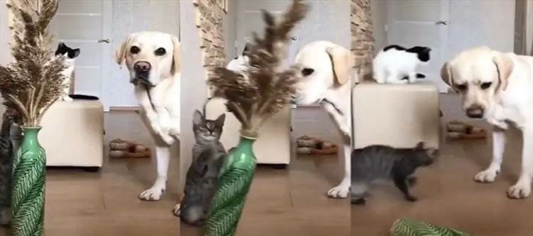 ఎలుక పిల్లికి ఆహారం అయితే పిల్లి కుక్కకు ఆహారం అనే విషయం ప్రతి ఒక్కరికి కూడా తెలుసు.. ఎందుకంటే ఇది ప్రకృతి నియమం. అయితే.. పిల్లి ఇంకా అలాగే కుక్క మధ్య శత్రుత్వం ఏ రేంజ్‌లో ఉంటుందో కూడా మనందరికీ తెలిసిందే.ఇక పొరపాటున పిల్లి గనుక కుక్కకు చిక్కితే ఇక అదే దానికి చివరి రోజు అవుతుంది. గుటుక్కన చంపి తినేస్తుంది. అందుకే కుక్క నుంచి తప్పించుకునేందుకు పిల్లి నానా రకాలుగా తంటాలు పడుతుంది. అయితే, కొన్ని పెంపుడు కుక్కలు ఇంకా పిల్లులు కలిసే ఉంటాయి. అలా కలిసి ఉన్న పెంపుడు పిల్లులు ఇంకా కుక్కలు చేసే అల్లరి అయితే పీక్స్‌లో ఉంటుందనే చెప్పాలి. టామ్ అండ్ జెర్రీ కార్టూన్ షో లో ఎలుక ఇంకా అలాగే పిల్లి కొట్టుకున్నట్లుగా.. పిల్లులు ఇంకా అలాగే కుక్కలు గేమ్స్ ఆడుతాయి. అలాగే ఒకదానిని మరొకటి ఆటపట్టిస్తాయి. తాజాగా అలాంటి ఓ ఫన్నీ వీడియో ఒకటి ఇప్పుడు సోషల్ మీడియాలో వైరల్ అవుతోంది. ఇక ఈ వీడియోను చూసి నెటిజన్లు బాగా ఫుల్లుగా పొట్ట చెక్కలు అయ్యేలా నవ్వుకుంటున్నారు.ఇంతకీ ఈ వీడియోలో ఏముందో మనం ఇప్పుడు తెలుసుకుందాం..
