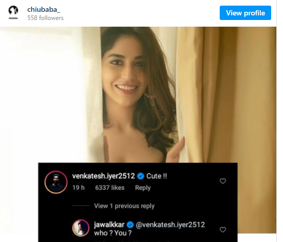 Famous cricketer, venkatesh Iyer's post is currently going viral on Instagram. Actress priyanka jawalkar from madhya pradesh had made her telugu debut and became famous for her role in Vijay Devarakonda's 'Taxiwala' movie. She recently posted a photo from her own instagram page. Famous cricketer venkatesh Iyer, who saw the photo, tapped the comment as 'cute' in reply to the photo. priyanka saw this and said Is this really You? for his comment. One of the fans took a screenshot of it and posted it on instagram and the post is currently going viral.Venkatesh Iyer, a cricketer from madhya pradesh, is one of the most important emerging cricketers. venkatesh, who played for kolkata in the IPL last year, excelled in both batting and bowling. This gave him the opportunity to play in the 2021 t20 World Cup. Although he did not fare as well as expected in the World Cup, he is seen as having a great future. He is currently playing for kolkata Knight Riders IPL 2022. Even though he does not fare well in the recent matches, fans are expecting that a good performance will be given by him soon.