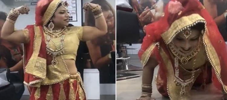 డీజే పాటల తో చిన్న పిల్లలు అందరూ డాన్స్ లతో ఉత్సాహం గా పెళ్లి మండపం మొత్తం మారి పోయింది. అంతా సందడి తో కళకళలాడుతున్న సమయంలో వధువు ఎంట్రీ ఇచ్చింది. ఇంతలోనే అందరికీ నమస్కారం చేసి నేలపై పుషప్స్ చేసింది. ఇక ఫిట్నెస్ పై తనకున్న ఇష్టాన్ని పెళ్లి మండపంలోనే చాటుకుంది. హర్యానాలోని గురుగ్రామ్ జిల్లాలో వెలుగులోకి వచ్చింది ఈ ఘటన. పెళ్లి దుస్తులు ధరించి భారీగా నగలు ధరించి వధువు పుషప్స్ చేసిన వీడియో సామాజిక మాధ్యమాలలో చెక్కర్లు కొడుతుంది.. ఇది చూసి అందరూ షాక్ అవుతున్నారు. ఏదేమైనా ఇటీవల కాలంలో పెళ్లి చేసుకునె నూతన వధూవరులు సరికొత్త ట్రెండ్ క్రియేట్ చేయడానికి ప్రయత్నిస్తున్నారు.