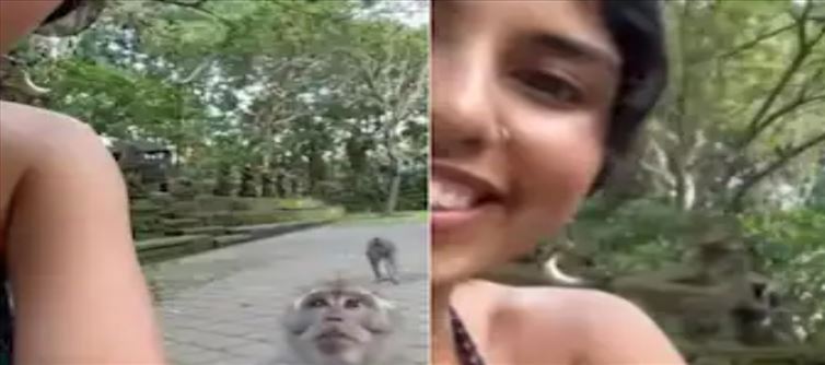 ఈ క్రమంలోనే ఆ కోతులతో మాట్లాడుతూ సైగలు చేస్తూ సెల్ఫీ వీడియో రికార్డింగ్ చేయడం మొదలు పెట్టింది ఆ యువతి. వెనకాల ఉన్న కోతులు ఆమె దగ్గరికి వచ్చాయి. ఇక యువతి మెడలో ఉన్న ఒక లాకెట్ తీసుకోవడానికి ప్రయత్నించింది ఓ కోతి. ఇక ఆ తర్వాత ఇంకోటి ఆమె దగ్గరికి వచ్చింది. ఇక ఫోన్ లో తన ప్రతిబింబాన్ని వింతగా చూసింది కోతి. అయితే అక్కడికి వచ్చిన కోతి కాస్త రొమాంటిక్ కాబోలు.. వస్తూనే యువతికి షాక్ ఇచ్చింది. యువతి దగ్గరికి వెళ్లి డ్రెస్ పైకెత్తి చూసింది. అక్కడ ఏమైనా దాచిపెట్టిందేమో అని గమనించింది. ఇక యువతి వెంటనే డ్రెస్ సర్దుకుంది. అటు కోతి మాత్రం నేనెం చేశాను అంటూ అమాయకంగా యువతి వంక చూడటం గమనార్హం..