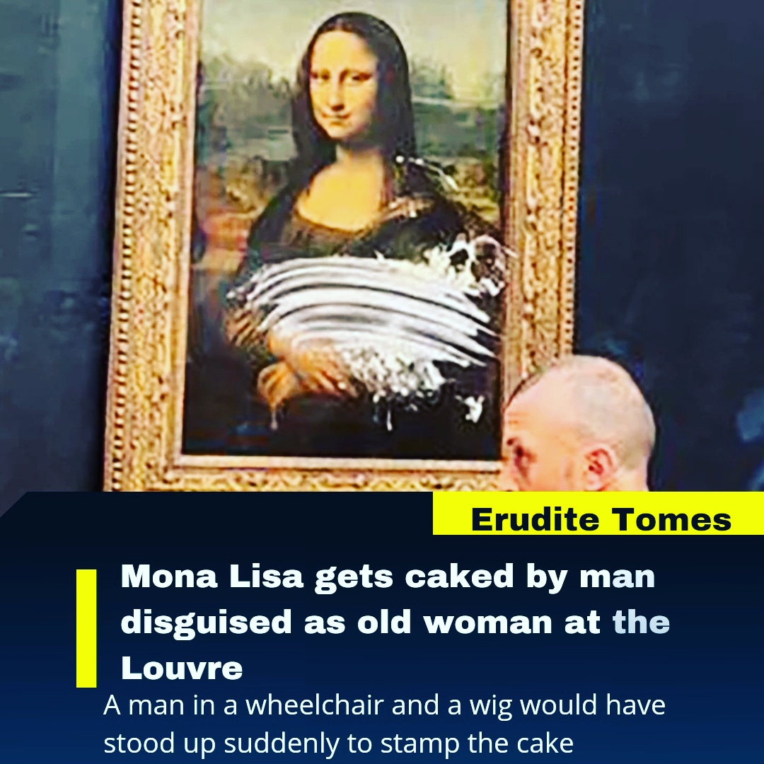 Art enthusiasts and spectators alike were shocked to see a man dressed as an old woman trying to damage a Mona Lisa painting in the Louvre. The man, disguised as an old woman in a wheelchair, suddenly jumped out of a chair, threw his wig, and painted a cake on a Mona Lisa painting, causing a stir in the area. This came as a shock to all who were present at the museum. Scenes of visitors photographing a cake-painted painting are currently going viral on social media. Security personnel rushed to the scene and evacuated the man, who was seen trying to damage the painting in the museum's most important room.