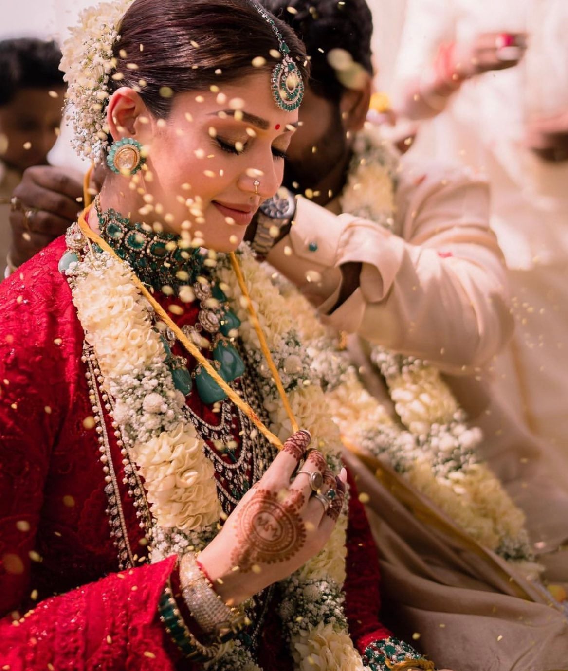 The wedding photo has been officially shared on director Vignesh Sivan's twitter page. nayantara sparkles with predatory beauty in it, clad in crimson as predicted by the fans.