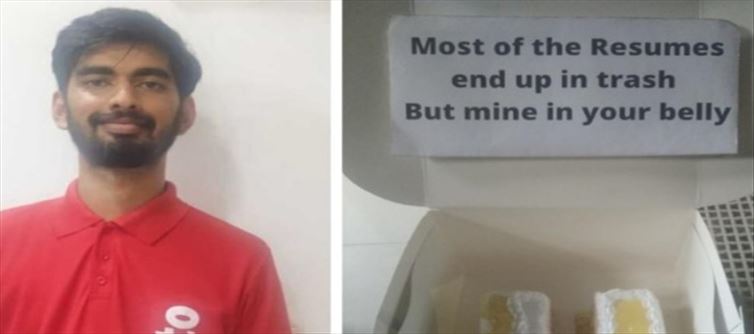 He shared a photo of himself holding a resume in a cake box and wearing a zomato dress on his social media. Most of the resumes given to companies end up in the trash, but his resume is written on their stomach, he has written on the cake box where the resume is kept. Dressed as a zomato delivery boy and delivered his resume to a few startups in Bangalore at gate interviews. He said in his social media post as a caption asking would this work for him?In this case, Aman Khandelwal is looking for a job as a management trainee, but why did he dress up as a zomato delivery executive and submit his resume? One of the twitter users said that he did not understand. One also mentioned that the security of start-up companies is a question mark. Another user Am I the only one who seems crazy? Is it that easy to become a zomato employee? Another twitter user said that this incident should not become an example of misuse of security, let alone security in startups. zomato management has not yet commented on the incident but is expected to do so soon. But at the same time, another user pointed out that this was not his personal idea and similarly a person who had already applied for a job in a company in the US had presented his resume wearing the clothes of a famous company.