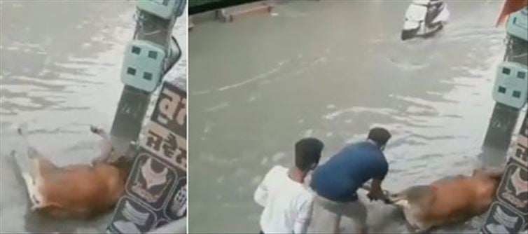 ఈ క్రమంలోనే పక్కనే ఉన్న ఒక దుకాణదారుడు ఆవు కరెంట్ షాక్ తో ప్రాణాలు కోల్పోయే పరిస్థితి ఉంది అన్నది అర్థం చేసుకున్నాడు. దీంతో ఎంతో రిస్క్ చేసి ఆవు ప్రాణాలను కాపాడాడు. తన వెంట తీసుకు వెళ్ళిన ఒక చిన్న గుడ్డ తో నీళ్ళలోకి దిగి ఆవు కాళ్ళని పట్టుకుని వెనక్కి లాగడం మొదలు పెట్టాడు. గమనించిన మరో ఇద్దరు యువకులు సైతం అతనికి సహాయం చేశారు. దీంతో ఆవు కరెంట్ షాక్ నుంచి ప్రాణాలతో బయట పడింది అని చెప్పాలి. అయితే ఏమాత్రం పొరపాటు జరిగినా సదరు యువకుడు ప్రాణాలు కూడా పోతాయి అని తెలిసినప్పటికీ.. రిస్క్ చేసి ఆవు ప్రాణాలు కాపాడిన సదరు యువకుడిపై ప్రస్తుతం నెటిజన్లు ప్రశంసలు కురిపిస్తున్నారు. ఈ ఘటన పంజాబ్ లో జరిగింది.