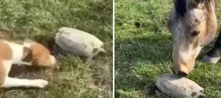 ఇక ఈ వీడియో చూసిన తర్వాత నెటిజన్లు నవ్వు ఆపుకోలేక పోతున్నారు. ఇంతకీ అక్కడ గుండ్రటి గుడ్డు పాత్రలో ఉన్నది ఏంటో తెలుసా ఒక తాబేలు. సాధారణంగా తాబేలు చాలా నెమ్మదిగా కదులుతూ ఉంటుంది. ఇక ఏదైనా ప్రమాదం వచ్చింది అని తెలిస్తే కాళ్లు చేతులు తల లోపలికి పెట్టుకొని ఉంటుంది. అయితే ఇటీవల తాబేలు ఇలా మైదానం లో కదులుతున్న సమయంలో దాని దగ్గరకు వచ్చాయి కుక్క గుర్రం. వాటిని చూసిన తాబేలు దాని తలను లోపల దాచుకుంది. దీంతో వింతగా కనిపిస్తుంది ఇది ఏంటా అని వాసన చూడటం మొదలుపెట్టాయి. ఇంతలో తాబేలు ఒక్కసారిగా కదిలింది. దీంతో దెబ్బకు భయంతో కుక్క గుర్రం రెండు పరుగులు పెట్టాయి.