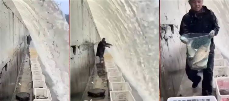 అయితే ఇలాంటి వినూత్నమైన ఆలోచన తో చేపలు పట్టాలని అసలు ఎలా అనిపించిందబ్బా అని కొన్ని వీడియోలు చూసినప్పుడు ప్రతి ఒక్కరికీ అనిపిస్తుంటుంది. ఇప్పుడు ఇలా అందరినీ ఆశ్చర్య పరిచే ఒక వీడియో వైరల్ గా మారిపోయింది అని చెప్పాలి. ఎంతో కష్టపడి చెరువులో వలలు వేసి చేపలు పట్టడమే కాదు కాస్త తెలివిగా ఆలోచిస్తే సులభంగానే ఊహించని రీతిలో ఎక్కువ చేపలను పట్టొచ్చు అని ఇక్కడ ఒక వ్యక్తి నిరూపించాడు. ఇంతకీ సదరు వ్యక్తి ఏం చేశాడు అంటే.. డ్యాంలో నీళ్లు నిండి కిందికి వచ్చేస్తూ ఉన్నాయి. అయితే నీటి ప్రవాహానికి చేపలు ఎదురు ఈదుతూ ఉంటాయి అన్న విషయం తెలిసిందే.