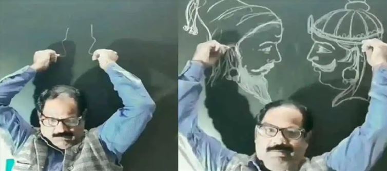 వెనుకకు తిరిగి, బోర్డు వైపు చూడకుండా ఒకేసారి రెండు చేతులతో డ్రాయింగ్ చేయడం ఎప్పుడైనా చూశారా? అలాంటి అరుదైన నెట్టింట హల్ చల్ చేస్తుంది.. ఓ వ్యక్తి తన వీపును బోర్డుకి ఆనుకుని కుర్చీపై కూర్చుని రెండు చేతులతో శివాజీ, అతని ప్రత్యర్థి చిత్రాన్ని గీశాడు. ఆ బొమ్మలు గీసేటప్పుడు ఒక్క తప్పు కూడా లేకుండా చక్కగా, తేలిగ్గా డ్రాయింగ్ గీయడం అద్భుతంగా పేర్కొనవచ్చు. హిందుస్థాన్ నౌ గ్లోబల్ ప్రెస్ దాన్ని షేర్ ఫేస్‌బుక్‌లో షేర్ చేసింది. దీనికి 1.5 మిలియన్ల వ్యూస్, 1.49 లక్షల లైక్‌ల తో పాటు 2 వేలకు పైగా కామెంట్‌ లు వచ్చాయి... అతని టాలెంట్ కు ప్రతి ఒక్కరూ ఫిధా అవుతున్నారు.. మొత్తానికి అతను సెలెబ్రేటి అయ్యాడు..
