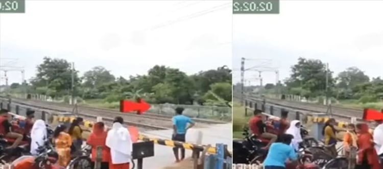 పట్టాలపై రైల్ వెళ్తున్న సమయంలో అక్కడ వాహనదారులు వెళ్లకుండా గేట్ వేసారు రైల్వే అధికారులు. దీంతో వాహనదారులు అందరూ కూడా గేట్ కి ఇవతలి వైపు వేచి చూస్తున్నారు. ఇంతలోనే మరో వైపు నుంచి ఒక దొంగ అక్కడికి వచ్చాడు. మొదట ఒక సాధారణ వ్యక్తిలా కనిపించాడు. అయితే అదే సమయంలో ద్విచక్ర వాహనంపై ఉన్న ఒక వ్యక్తి ఫోన్లో మాట్లాడుతూ లీనమై పోయాడు. ఇంతలో అక్కడికి వచ్చిన వ్యక్తి ఇక అతని చేతిలో నుంచి మొబైల్ లాక్కొని పరిగెత్తాడు. వాహనంపై ఉన్న వ్యక్తి కూడా బైక్ దిగి అక్కడి నుంచి వెళ్లేందుకు ప్రయత్నించగా... అప్పుడే రైలు దూసుకొచ్చింది. దీంతో ఏమీ చేయలేక ఇటువైపే ఉండిపోయాడు. ఈ ఘటన అందరినీ అవాక్కయ్యేలా చేసింది.
