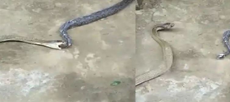 ఇందుకు సంబంధించిన వీడియో కాస్త ప్రస్తుతం సోషల్ మీడియాలో తెగ చక్కెర్లు కొడుతుంది అని చెప్పాలి. ఒడిశాలో ఈ ఘటన వెలుగు చూసింది అని చెప్పాలి. అటవీ ప్రాంతానికి సమీప గ్రామంలో ఒక ఇంట్లోకి కొండచిలువ ప్రవేశించింది. అదే సమయంలో ఒక పెద్ద నాగుపాము కూడా అక్కడికి వచ్చింది. దీంతో రెండు పాములు పోట్లాడుకున్నాయి. ఈ క్రమంలోనే కొండచిలువను నాగుపాము అమాంతం మింగేసింది. ఇది చూసిన స్థానికులు అవాక్కయ్యారు. చూస్తుండగానే కొండచిలువ మింగేసిన నాగుపాము ఆ తర్వాత బయటకు కక్కేసింది. ఇందుకు సంబంధించిన వీడియోను సోషల్ మీడియాలో పెట్టడంతో వైరల్ గా మారింది.