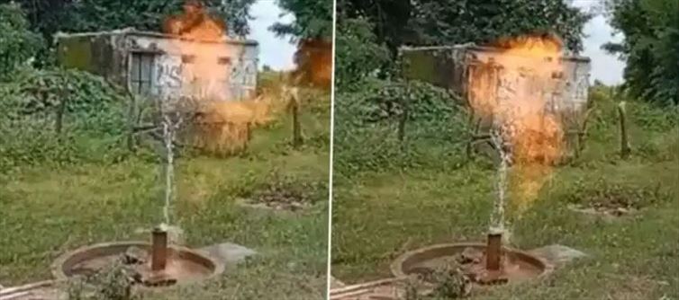 చేతి పంపులోంచి నీరు కాకుండా ఇంకేదైనా వస్తే ఖచ్చితంగా వెంటనే షాకవుతాం. కానీ అదే పంపులోంచి మంటలు, నీరు కలిపి వస్తే భయంతో పరుగులు తీస్తాం. అయినా అసలు నీటి పంపులోంచి మంటలెలా వస్తాయి.. వచ్చినా మంటలను ఆపే శక్తి నీటికుంటుంది కదా సాధారణంగా అనుకుంటాం.. ఒక వేళ మంటలు ఇంకా నీళ్లు కలిపి వస్తే బాబోయ్ అంటూ నాలుగు అడుగులు వెనక్కి పరిగెడతాం. నిజమే ఇలాంటి ఘటనే మధ్యప్రదేశ్ లోని ఛతర్ పూర్ జిల్లాలో జరిగింది. ఏంటి ఇప్పటికి నమ్మబుద్ది కావడం లేదా.. అయితే ఈ స్టోరీ తెలుసుకోండి..మధ్యప్రదేశ్ రాష్ట్రంలోని ఛతర్ పూర్ లోని బక్స్ హహా తాలుకా కాచర్ గ్రామంలో గురువారం తెల్లవారుజామున ఓ వింత ఘటన జరిగింది. గ్రామంలోని ఓ చేతి పంపు నుంచి నీరు, మంటలు ఒకేసారి రావడంతో ఆప్రాంత ప్రజలంతా భయాందోళన చెందారు. ఈ వింతను చూసేందుకు గ్రామంలోని ప్రజలంతా ఆ చేతి పంపు చుట్టూ గుమిగూడారు. గతంలో ఎప్పుడూ ఇలాంటి ఘటన గ్రామంలో జరగలేదని స్థానికులు అంటున్నారు. ఈఘటనకు సంబంధించిన వీడియో సోషల్ మీడియాలో వైరల్ అవుతోంది. సాధారణంగా ఏదైనా కాలినప్పుడు లేదా మంటలను వ్యాపించే పదార్థం ఆప్రదేశంలో ఉన్నా కేవలం మంటలు వచ్చే అవకాశం ఉంటుంది. కాని.. నీరు, మంటలు కలిపి ఒకేసారి రావడంతో ఆప్రాంత ప్రజలంతా సంభ్రమాశ్చర్యాలకు గురయ్యారు. ఈఘటనపై స్థానికులు ఇచ్చిన సమాచారంతో అధికారులకు సంఘటనా స్థలానికి వెళ్లి పరిశీలించారు.