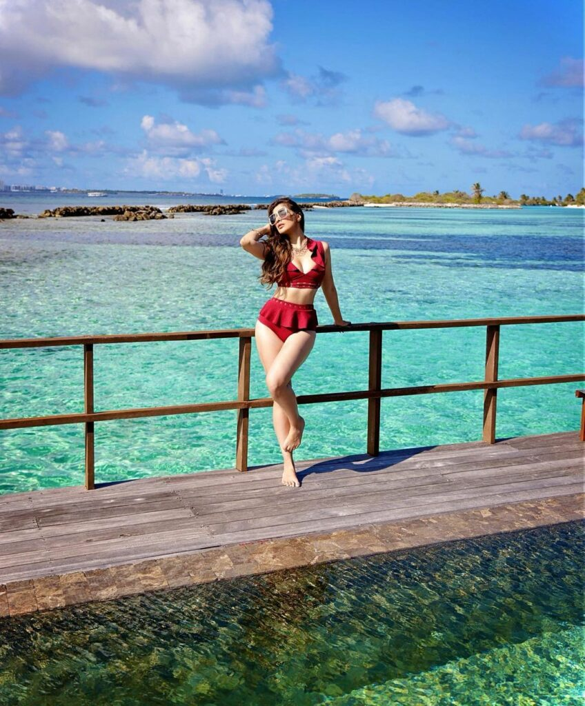 Laxmi frequently posts pictures of her favourite physical hobbies and workouts on Instagram. Her favourite pastime is riding horses. This is what she learned to do for a music video. She uploaded a picture of herself riding a horse on the sand for a photo session. Laxmi enjoys spending time at the beach or pool and captioned this photo, "From another point of view." She enjoys swimming naturally and occasionally snorkelling. She shared a video of herself snorkelling on Instagram. If I could live here, Laxmi described the picture.