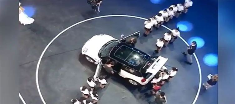 కానీ ఇక్కడ మాత్రం ఇలాంటి తరహా వీడియో ఒకటి సోషల్ మీడియాలో తెగ చక్కెర్లు కొడుతుంది అని చెప్పాలి. ఇక్కడ వీడియో లో కనిపిస్తుంది మనందరికీ తెలిసిన ఫైవ్ సీటర్ కారు. కానీ ఈ ఫైవ్ సీటర్ కార్ లో కూర్చుంది  ఏకంగా 27 మంది. ఇందుకు సంబంధించిన వీడియో ట్విట్టర్ వేదికగా చక్కర్లు కొడుతూ ఉండడంతో ఇది చూసిన ఎంతో మంది నెటిజన్లు అవాక్కవుతున్నారు అని చెప్పాలి. ఇలా కారులో 27 మంది కూర్చొని ఏకంగా ప్రపంచ రికార్డు నెలకొల్పారు. గిన్నిస్ బుక్ ఆఫ్ వరల్డ్ రికార్డ్స్ లో చోటు దక్కించుకున్నారు.