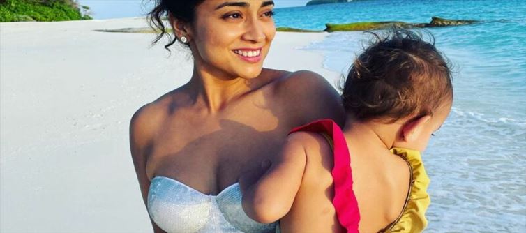 shriya saran travelled to the Maldives. The actress shared numerous images of herself wearing both a black monokini and a two-piece. Her pics with her adorable daughter are just as lovely as these amazing images. The actress thanked everyone by writing, "Thank you for all your love, thank you for a lovely day," as the comment to the photos. In terms of her professional life, Shriya was most recently seen in