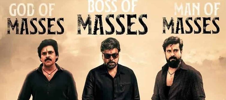 Chiranjeevi is shown in the centre of the fan-made image, which has the caption "Boss of Masses." ram charan is referred to as the Man of the Masses and is positioned to Chiranjeevi's right, while pawan kalyan is referred to as the god of the Masses and is positioned to the left of the image. The stills from ram Charan's Rangasthalam, Chiranjeevi's Godfather, and Pawan Kalyan's bheemla nayak are blended in the image. The image immediately makes Mega fans want for a Mega multistarrer.