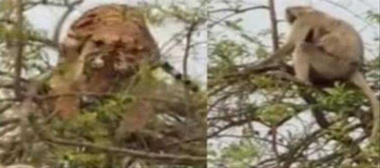 నువ్వు పులి అయితే నాకేంటి ఇది నా అడ్డ అన్న విధంగానే ఇక్కడ ఒక కోతి పులితో వ్యవహరించింది అని చెప్పాలి. తన కోతి చేష్టలతో పులితోనే ఒక ఆట ఆడుకుంది. ఇంతకీ ఏం జరిగిందంటే.. వైరల్ గా మారిపోయిన వీడియోలో.. చెట్టుపై ఉన్న కోతిని వేటాడేందుకు పులి ప్రయత్నిస్తుంది. ఈ క్రమంలోనే ఎంతో కష్టపడి చెట్టు ఎక్కుతుంది. ఇక బ్యాలెన్స్ చేసుకుంటూ ఎట్టకేలకు కోతి దగ్గరికి చేరుతుంది. ఇంత జరిగిన తర్వాత ఆ కోతి అక్కడే ఉంటుందా.. చిటారి కొమ్మకు వెళ్లి పులితో దాగుడుమూతలు ఆడుతూ ఉంటుంది. చివరికి పులి దాడి చేయడానికి వచ్చిన సమయంలో మరో కొమ్మ పైకి వెళ్ళిపోతుంది. తద్వారా ఇక కోతి పై దాడి చేయడానికి వచ్చిన పులి చివరికి చెట్టు మీద నుంచి కిందికి పడి తోక ముడుచుకుంటుంది.