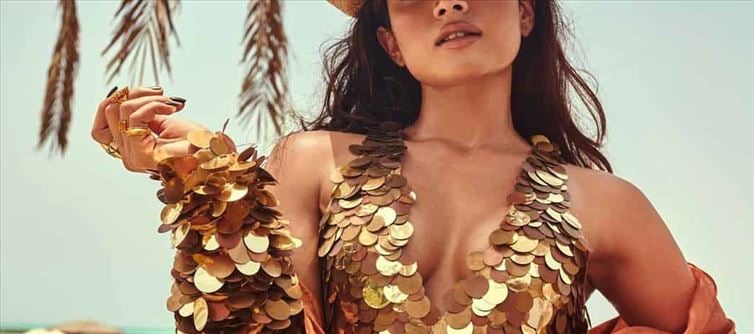 Rashmika sparkled in the dunes of Abu Dabhi as she slipped into this golden sequined monokini created by Nirmoohi and showered a big dose of her gorgeous glamour. She wore a bikini and a cowboy hat, giving the impression that she is getting ready to search for treasure on the beaches in a vintage cowgirl outfit. It goes without saying that this gorgeous lady put on a fantastic show of glitz.Rashmika shined in a black bikini-like attire and other revealing costumes where she put the best of her curves to turn up the heat at home in the other photos that followed, when she slid into various designer wear styled by Anaita Shroff Adjania. She undoubtedly added a disco touch to most of her clothes, but we have to admit that she is stunning, sparkling like a diamond amid the emirates' golden dunes.