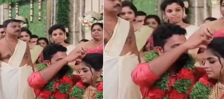 ఇకపోతే ఇటీవలే వైరల్ గా మారిపోయిన వీడియోలో చూసుకుంటే సాంప్రదాయం ప్రకారం వరుడు వధువు నుదుటిన సింధూరం పెట్టాడు. అయితే ఇలా సింధూరం పెడుతూ వరుడు చేసిన చిలిపి పని కాస్త అక్కడ ఉన్న అందరిని కూడా ఆశ్చర్యపరిచింది అని చెప్పాలి. ఈ వీడియోలో జరిగిన సంఘటన చూసుకుంటే వధువు వాళ్లది లవ్ మ్యారేజ్ అని చెప్పవచ్చు. పురోహితుని సూచనలు పాటిస్తున్న వరుడు సింధూరం పెట్టాడు. ఈ క్రమం లోనే తనకు నచ్చిన అమ్మాయి వైఫ్ గా వస్తుండడంతో సంతోషానికి అవధులు లేకుండా పోయాయి. ఇక ఒకవైపు నుదుటిపై సింధూరం పెడుతూనే మరోవైపు బుగ్గపై చిలిపిగా ముద్దు పెట్టేసాడు. దీంతో అందరూ ఒకసారిగా నవ్వుకున్నారు. ఇక వధువు ఎంతో సిగ్గు పడింది అని చెప్పాలి.