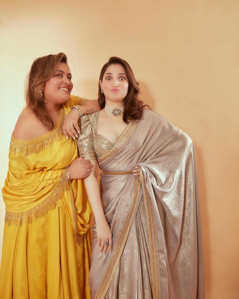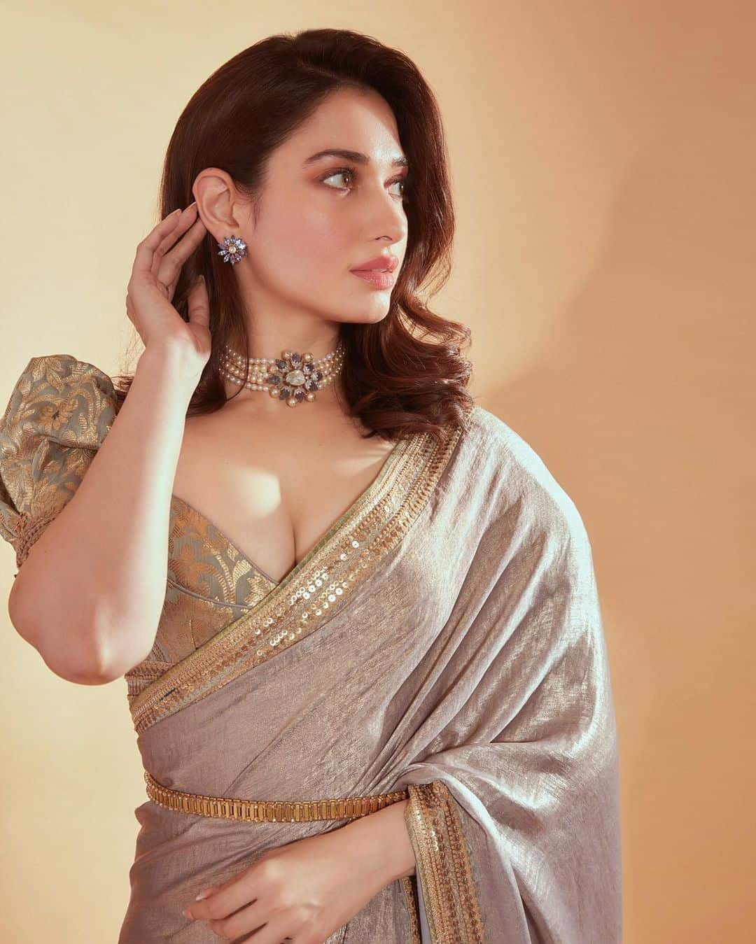 heroine has performed that sparkling exhibition of curves while wearing those blouses that resemble bikini tops, which has kept their gorgeous delight of curves on display. Tamanaah Bhatia, a milky siren, has since joined this group. a "pattu" shirt that shone over her creamy curves, and a modest but brilliant bronze coloured saree.