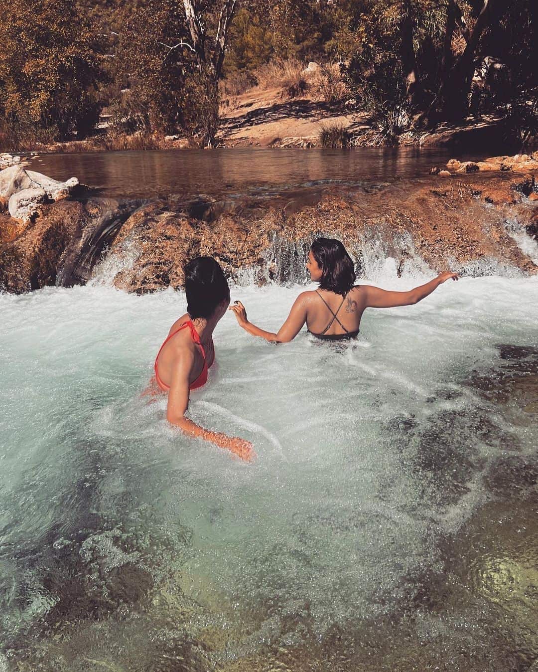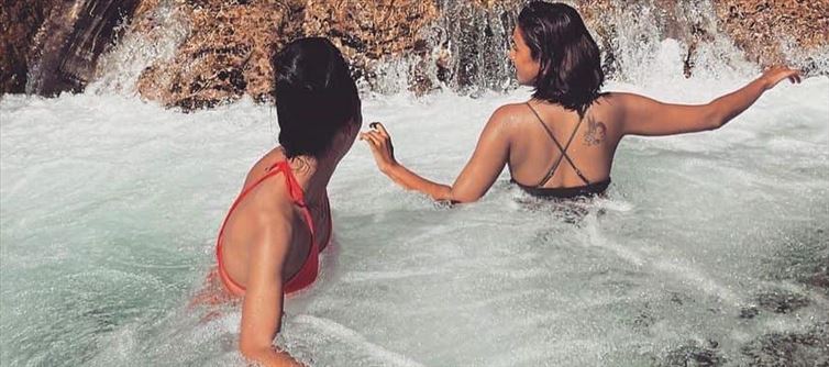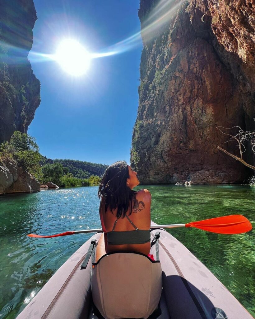 turkey yesterday, sharing details about what she did there. She was shot from behind in the photo while she was kayaking in a bikini top, and the tattoo on her right shoulder blade is clearly visible. It features a soaring bird and the initials
