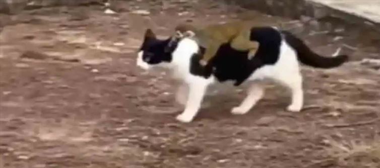 సాధారణంగా కోతి పిల్లలు తల్లి శరీరాన్ని అంటిపెట్టుకొని ఇక ఎక్కడికి వెళ్లినా కూడా తల్లితోనే వెళుతూ ఉంటాయి. ఇక ఇక్కడ ట్విటర్ వేదిక వైరల్ మారిపోయిన వీడియోలో చూసుకుంటే ఏకంగా పిల్లి సహనంతో ఆ పిల్ల కోతిని మోసుకెళ్తూ ఉంది. ఏకంగా తల్లి కోతి తన పిల్లలను ఏకంగా శరీరానికి అంటిపెట్టుకొని మోసుకెళ్లినట్లుగానే ఇక ఈ పిల్లి కూడా తల్లిపాత్ర తీసుకొని ఆ పిల్ల కోతికి సహాయం చేస్తుంది. దీంతో ఇక ఈ వీడియో చూసి నేటిజన్లు అందరూ ఫిదా అవుతున్నారు. పిల్లి, కోతి స్నేహానికి మంత్రముగ్ధులు అవుతున్నారు అని చెప్పాలి.