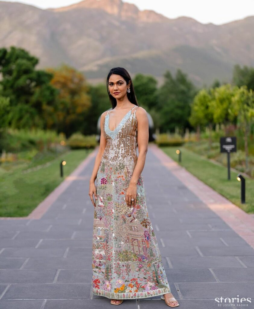 For a friend's wedding, sneha reddy traveled to South Africa, and lately her photos from there are stealing the show. sneha reddy posted two new images of herself wearing Anita Dongre clothing, which were taken by well-known celebrity wedding photographer Joesph Radhik. She carried the clothing like a seasoned model or actress because she was so stylishly smart and elegant.